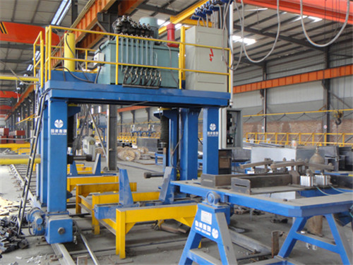 型箱組立一體機(jī)用于箱型柱組裝中U型和箱型的組裝成型。板材放置在帶有輔助對中裝置的支架上,電機(jī)驅(qū)動(dòng)行走門架進(jìn)入工作區(qū)域,行走門架上的壓缸壓緊工件的腹板及翼板組裝成型并點(diǎn)定焊。